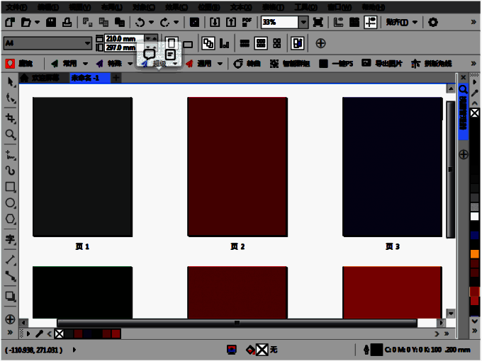 2.设计页面布局:在每个页面上,你可以绘制或添加所需的内容。例如,可以在每个页面上绘制相同大小的矩形,并用不同的颜色填充,以便区分不同的页面。