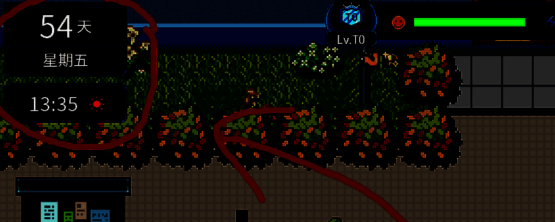 时间和日期在游戏左上角显示,每天是从早晨6:00开始,夜间2:00结束,每日可以提前在家中睡觉结束一天的行程,若是在2:00前没有进入睡眠,则会累倒睡在街头,有概率丢失财产,并且获得负面buff风餐露宿(速度-20% 持续时间180分钟)。
