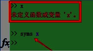 1、首先打开matlab软件编辑器的命令行窗口,符号变量必须提前定义,不然会报错,以x为例定义变量符号,方法是“syms空间变量名”,如下图所示。