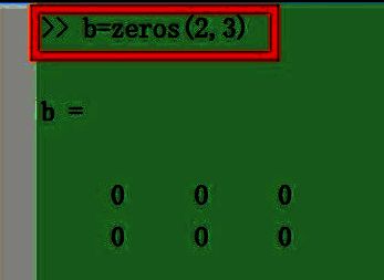 6、定义全零的矩阵,例如2行3列的矩阵,输入zeros(2,3)来定义,如下图所示。