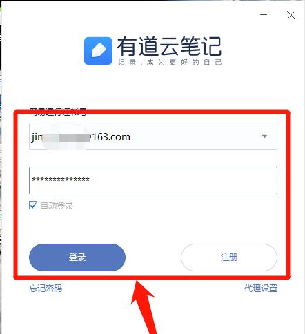打开“有道云笔记”,在“有道云笔记”窗口中,输入有道云笔记账户和密码,并单击“登录”按钮。
