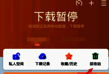 第四;进入下载详情界面在该面板的右上角找到【回收站】标志。