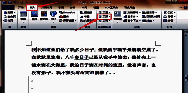 1、设置页脚:点击菜单栏【插入】中的【页脚】。