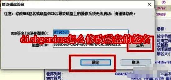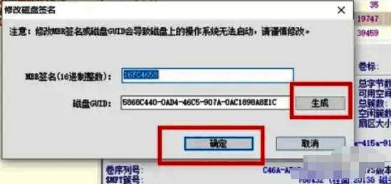 3、在设置好新的磁盘签名或GUID后,确认修改即可。