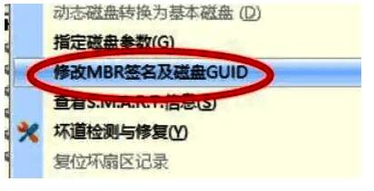 1、打开DiskGenius软件,在软件界面中找到目标磁盘,在磁盘菜单中点击“修改磁盘签名”选项。
