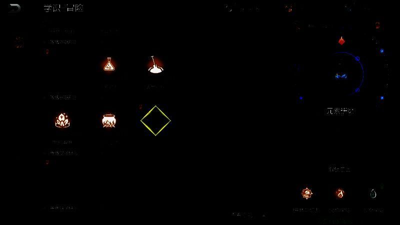 冒险学识:提升探索与生存能力,例如解锁高级采集工具(如粗制铲)、生存技巧(如中级药剂制作)等。