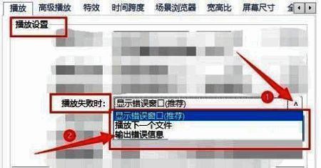第三步:进入“播放设置”界面中,点击“播放失败时”下拉按钮,在下拉列表中按需选择一项即可,如图所示。