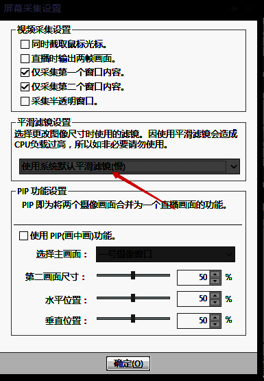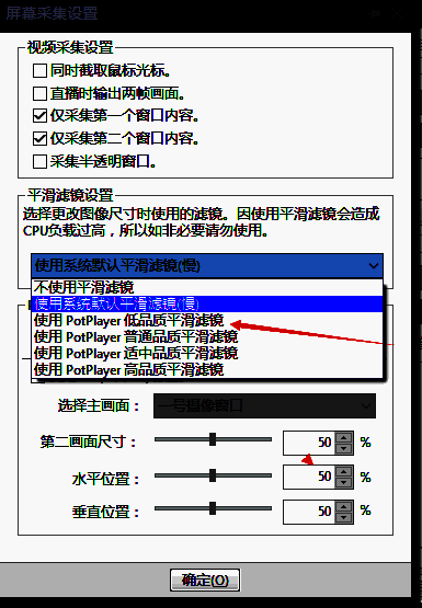 第七步:选中使用PotPlayer低品质平滑滤镜选项之后,点击确定(如图所示)。