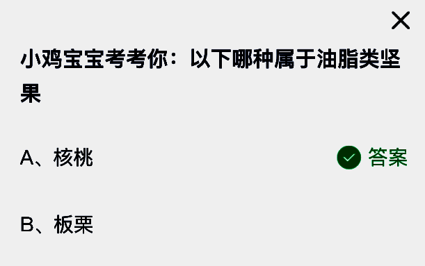 1、小鸡宝宝考考你:以下哪种属于油脂类坚果