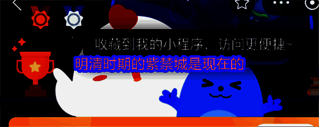小鸡宝宝考考你:明清时期的“紫禁城”是现在的?这是支付宝蚂蚁庄园小鸡答题6月16日题目,支付宝小鸡答题是大家非常喜欢的活动,大家获取饲料就可以喂养小鸡领取更多的蛋去帮助更多的人了!今日正确答案是【北京故宫】,紫禁城是明清两代的皇家宫殿,始建于明成祖永乐年间,现称为北京故宫博物院。