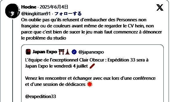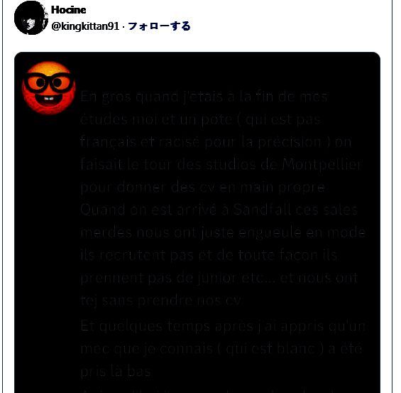 ·日前有玩家发帖,声称Sandfall Interactive工作室不接受有色人种以及非法国国籍的制作者加入公司,引发网友关于工作室在搞歧视性文化的舆情。