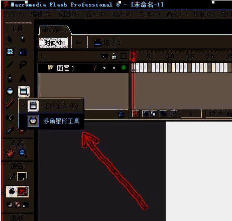 在工作区(舞台)中拖拉出一个大小适合的五角星即可。