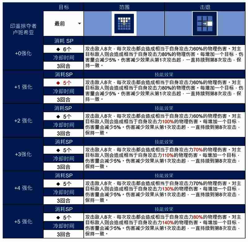 新暗c新机制,高sp消耗低cd,8连击的三角大范围倍率,会随着攻击到的敌人越多,伤害衰减越严重,最多衰减45%的倍率,而不是45%的总伤害,如果这个倍率全打到单体上,倍率会非常高!,但是一般情况下这个攻击范围是绝对不会只打到一格敌人的(除非是这次这样的定制魔兽)。cd3回合基本确定了是作为魔兽c来使用的,后续会战也能用上,也可以拿来推图,因为主线的怪普遍血量不高,就算有衰减也无伤大雅,可以秒掉。也可以用来提高末日之书的上限,毕竟8连击技能。