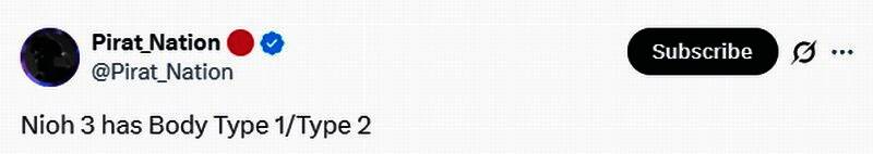 《仁王3》试玩Demo已上线PS商店。游戏博主Pirat_Nation透露,该作角色创建系统中的“身体类型”选项没有采用男/女传统分类,而是采用了类型1/类型2分类。