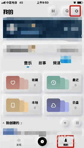 1、打开酷狗概念版,切换到【我的】,点击右上角设置图标进入;