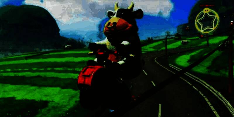 本次游戏新增场景——耀西餐厅,玩家能从里面获取食物袋,使用后既能解锁服装又能获得短暂加速,不同区域的耀西餐厅食物袋中会有对于主题的食物,当你在高速公路区域比赛时,你会抓到一个芝士汉堡,其他人类角色吃了没什么关系,但有问题的是,这些角色里偏偏有个奶牛角色,这就使游戏变得诡异起来了。