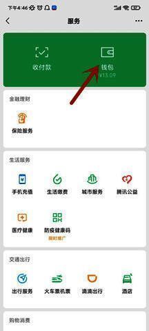 2、在【我的】页面找到并点击【服务】,之后继续选择【钱包】。