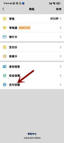 3、在【钱包】页面找到【支付设置】,点击进入。