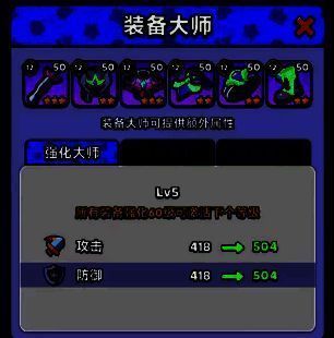 装备强化等级卡强化大师和精炼大师得等级即可,可获得额外得属性加成