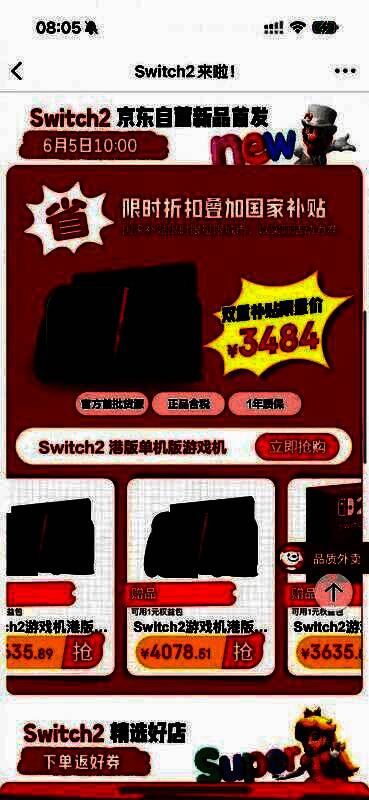 Switch 2现已在昨天正式发售,虽然中国内地不是首发地区,但国内零售商已有任天堂官方授权,有网友指出“猫国补3289元到手,比隔壁限量价还低200”。