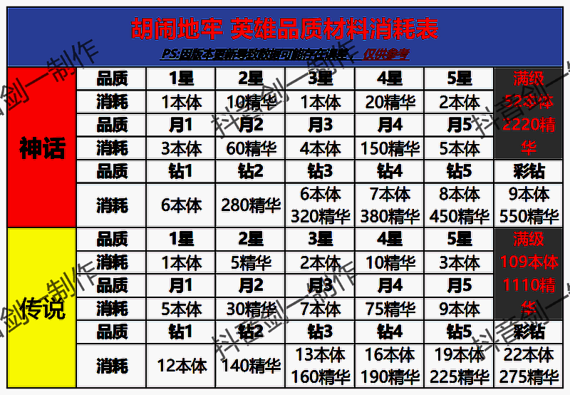《胡闹地牢》英雄进阶/英雄升级材料消耗表