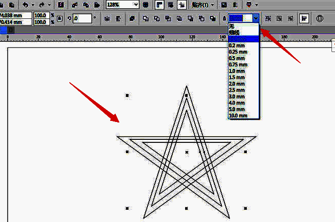2.然后,按住shift键复制两个五角星,分别向内外拖动0.1mm