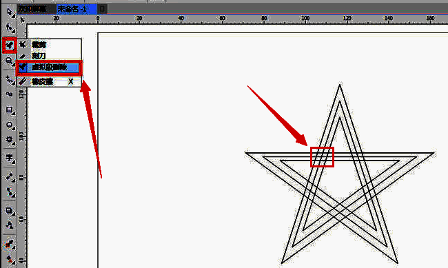 4.最后,点击形状工具按钮,双击五角星的各个节点,断开重叠线条