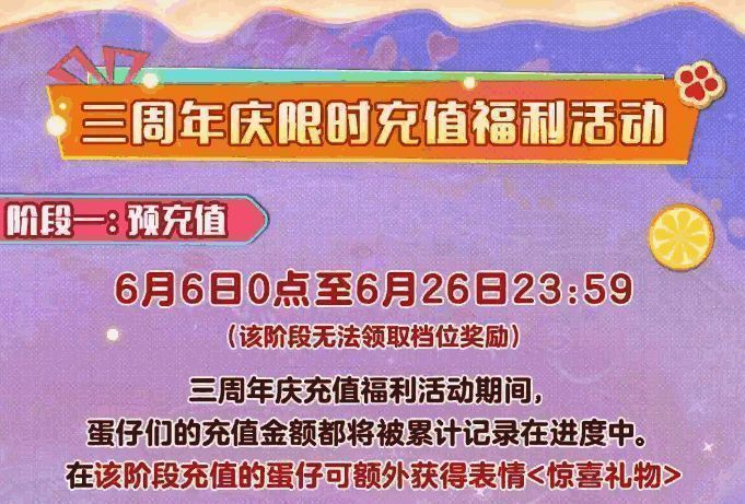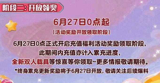 首先要提到的,当然是这次周年庆活动中最具吸引力的福利环节——充值返利。活动分为两大阶段,不仅让玩家在短期内体验到了丰厚的奖励,也巧妙地借助了“延迟满足”的心理,激发了玩家的参与热情。第一个阶段是预充值期(6月6日-6月26日),只要你在这个时间段充值,就能得到100%的充值返利,并且额外获得一个限定表情《惊喜礼物》。虽然这款表情并不会提升你的角色属性,但借着动态特效,它一定能成为你在社交平台上的亮眼话题。而等到第二阶段,大家可以在6月27日到7月10日期间领取奖励,累计充值30元就能解锁一款限定的双人载具“糖果热气球”。这辆载具不仅有着甜蜜的糖果特效,还需要两个人协作才能控制它,完全符合情侣或朋友间的互动需求。