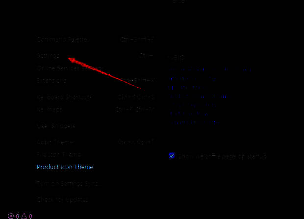 点击了设置图标选项之后,弹出了下拉菜单选中为 settings 选项