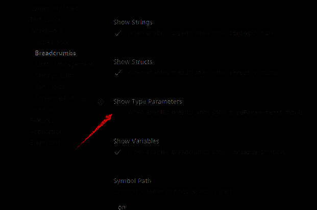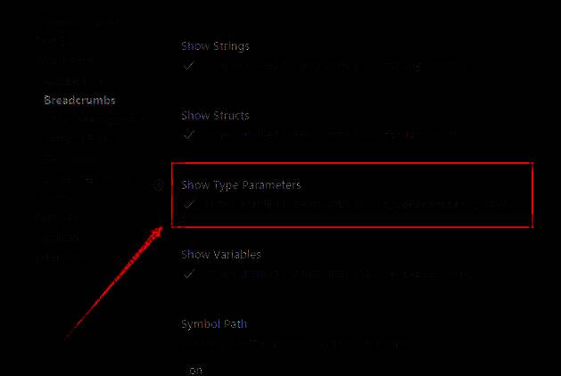 进入到了breadcrumbs 的界面中,勾选上显示类型参数 选项