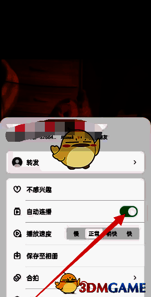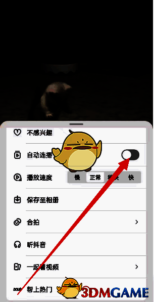 1、首先打开抖音,长按视频,点击【自动连播】后面的开关,如下图所示: