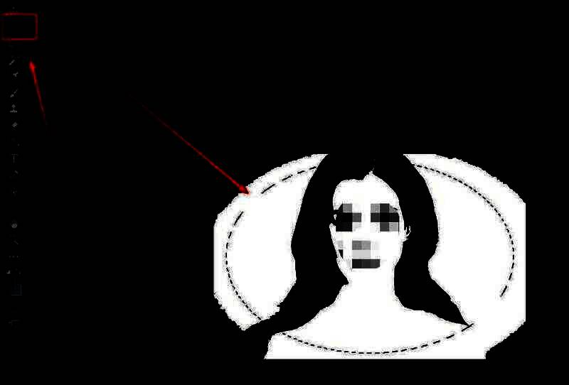 3.接着,点击椭圆选区工具,选中人像部分,接着点击键盘的ctrl+shift+i键反选选区,删除多余部分