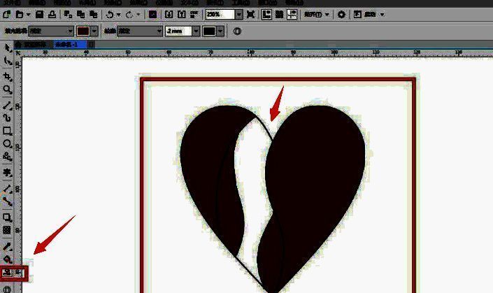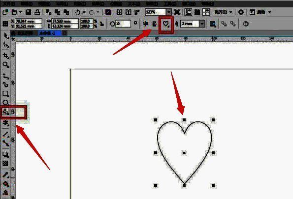 1.首先,在CDR软件中,点击左侧的基本形状工具,选择心形图案,绘制爱心