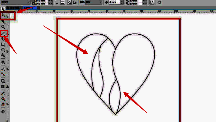 2.然后,点击两点线工具为心形绘制线条,并用形状工具将直线调整成弧线效果