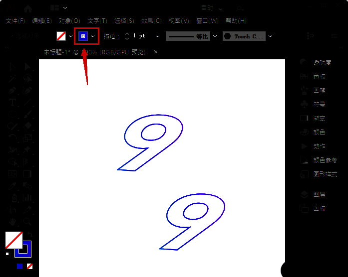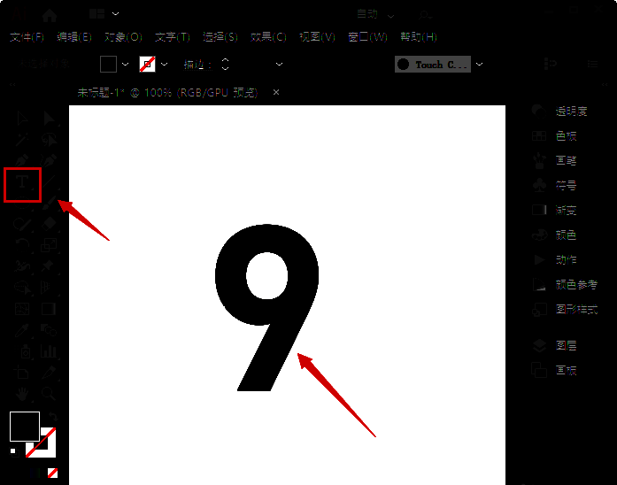 1、我们用【文字工具】输入一个数字9,如图所示。