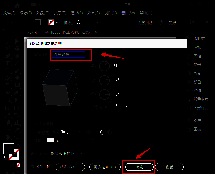 3、我们在3D凸出和斜角选项里面,选择【自定旋转】点击【确定】,如图所示。
