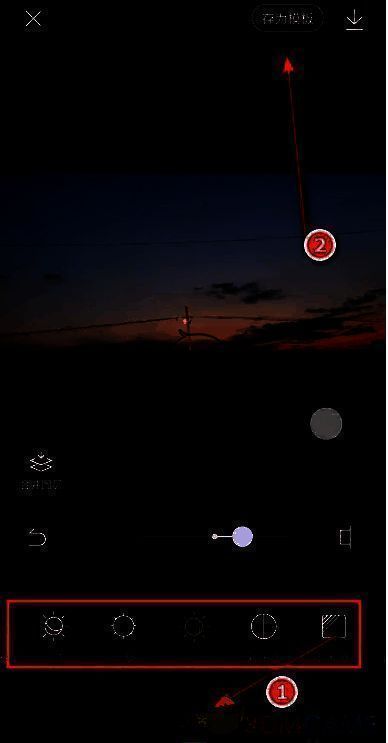 2、进入图片编辑后,点击调节,在上方调节参数内调节,调节完成后,点击上方的存为模板按钮