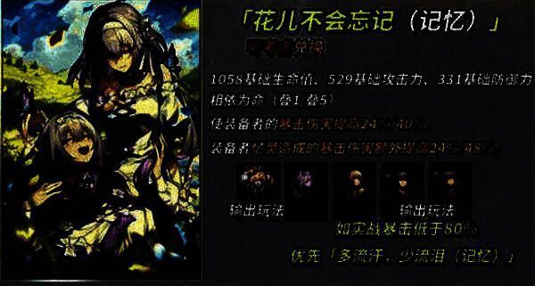 提供40%暴击伤害加成,忆灵暴击伤害再提升48%。