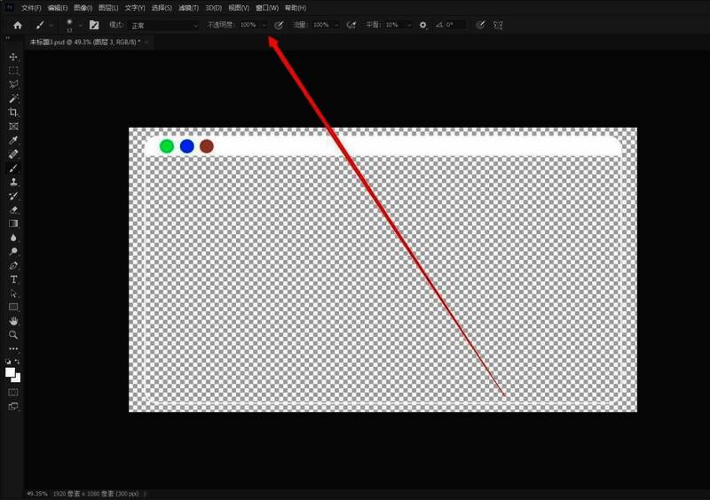 最后,在上方菜单栏即可调整画笔工具的不透明度。