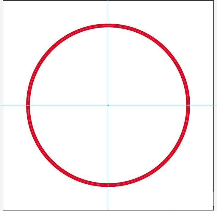 1、新建文档,调出标尺和参考线,画一个正圆,填充色为无,线条色为红色,描边设为100像素,如图。【技巧】绘制正圆时,按住shift+alt,可以从中心向四周绘制一个正圆。