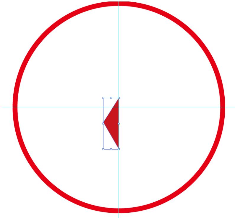 2、将正圆锁定后,在如图所示位置用钢笔工具画个三角形,如图。