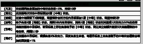 毒伤类一共有6种附带状态:亢龙+落花+蛤蟆+射毒+引毒+毒疗,其中附带【蛤蟆】武学是核心技能,伤害最高。