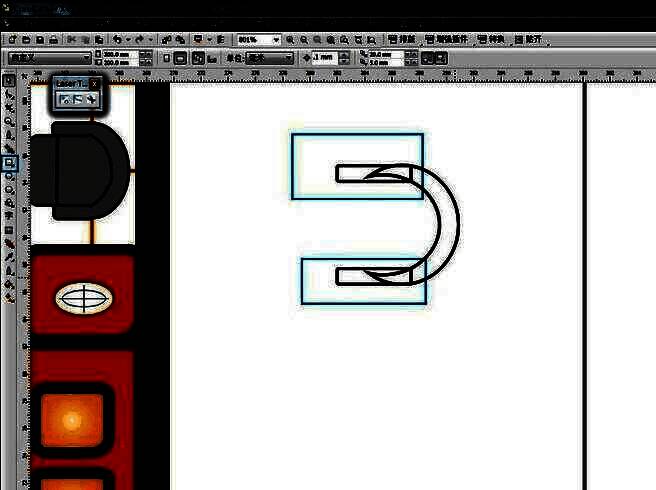 4.矩形工具画矩形,与两个小圆角矩形内侧相切,分别调整圆角