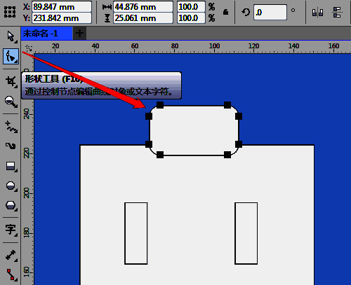 接着,单击形状工具,调整上面的矩形圆角,复制一个圆角矩形并调小。