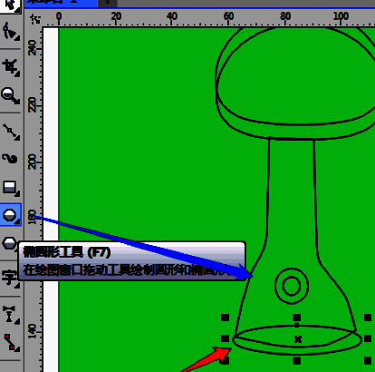 首先,打开CorelDRAW,用绘图工具中椭圆形工具绘制出椭圆。