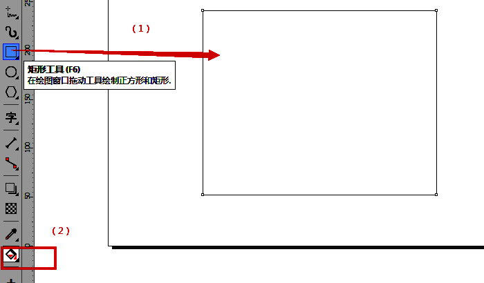 第一步,在CorelDRAW新建一个文档,工具栏里面选择矩形工具,画板中间拖出一个矩形。然后回到CorelDRAW 工具栏,再选中交互式填充工具。如图所示: