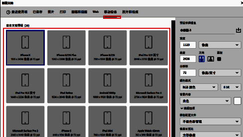 “移动设备”中有各种型号手机、平板尺寸和大小;