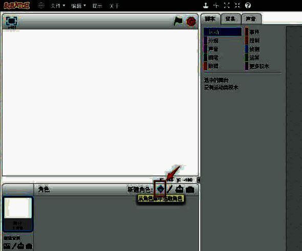 1.首先,在电脑上打开scratch界面后,在左下角的角色栏目中右键点击小猫,选择删除按钮删除小猫