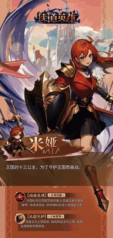 米娅是狭道英雄游戏中的骑士英雄,王国的十三公主,为了守护王国而奋战。远征军发起时,她主动请缨,想作为先锋部队深入深渊,为王国带来胜利的契机。下面是3DM小编给大家带来的《狭道英雄》米娅英雄档案,感兴趣的小伙伴们一起来看看吧。