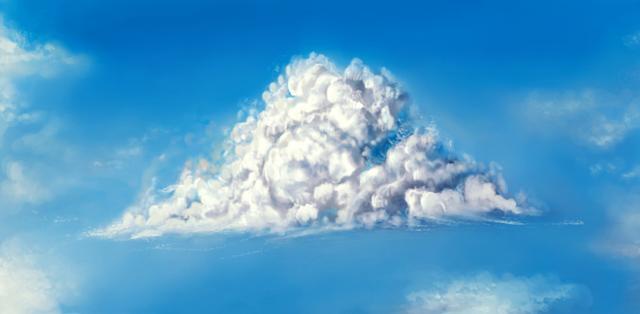 继续混合背景,同时在距离中添加较小的云。通过在云周围创建一圈雾气和氛围来营造深度感。